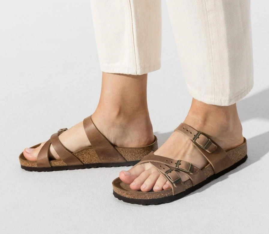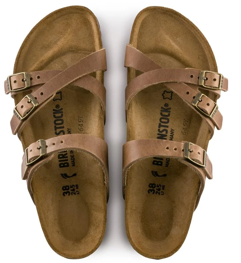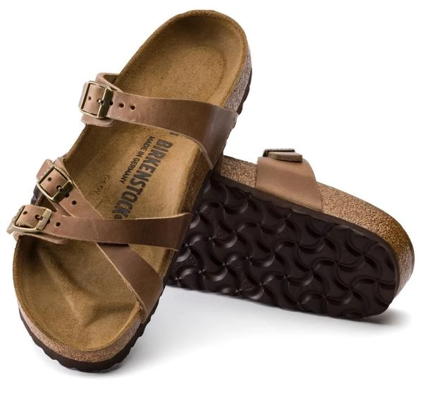 The BIRKENSTOCK Franca is an elegant model designed with slim, stylish crisscrossed straps. Featuring an impressive combination of design and wearability for all day comfort. The upper is made from extra thick, oiled nubuck leather.