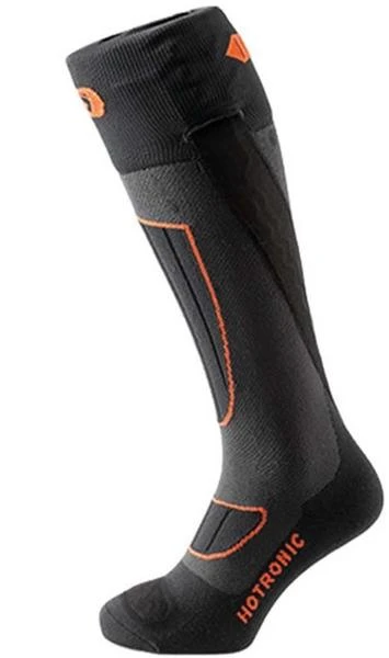 The Hotronic XLP One PFI 50 Heated Ski Socks are a perfect solution for any skier who has been plagued with cold feet who does not want bulky battery packs attached to their boots. Two Lithium-Ion Batteries can deliver up to 11 hours of consistent heat. The low-profile battery easily connects up above the cuff of your ski boot to stay out of the way as you spend your day on the mountain with warm and cozy feet. The XLP One is machine washable (remove battery packs) and air dry for a fresh feeling every time you hit the mountain.