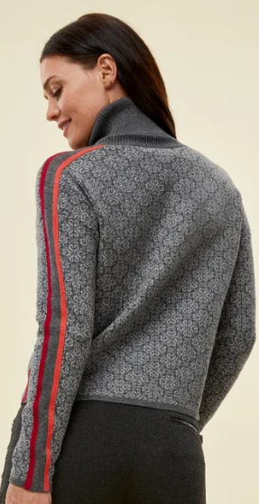 - Knit in stripe along side seam and sleeve on multi-color nordic jacquard