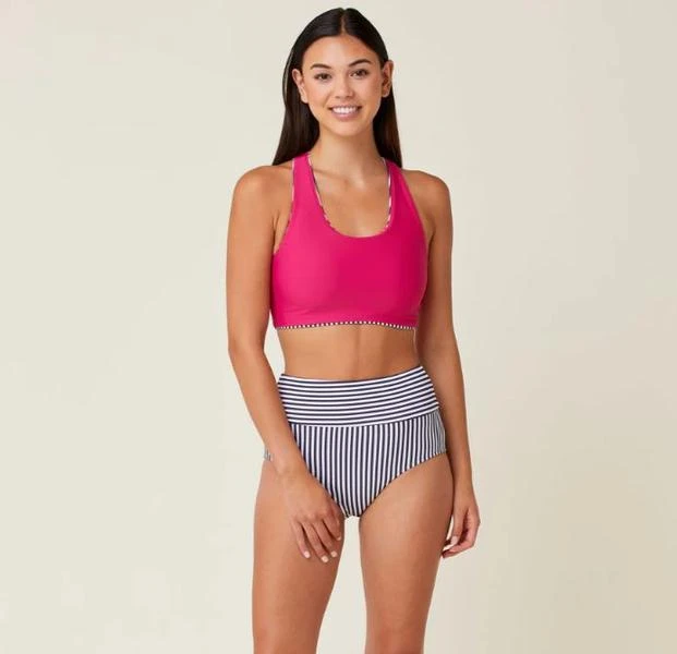The Nokoni Reversible Bikini Bottoms let us have it our way whether that’s a high-rise or fold-over fit. It works well for mixing and matching with a variety of tops and comes in a few bold prints that help us stand out at the beach.