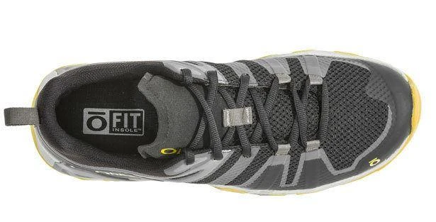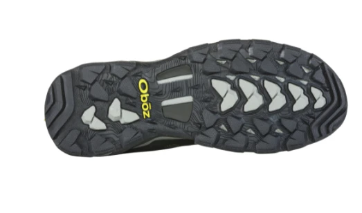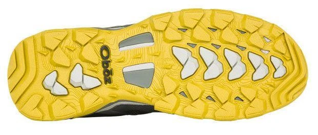 Oboz Tempest outsole reduces weight without compromise, featuring multi directional and perimeter lugs for traction, and active flex grooves for freedom of movement.