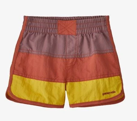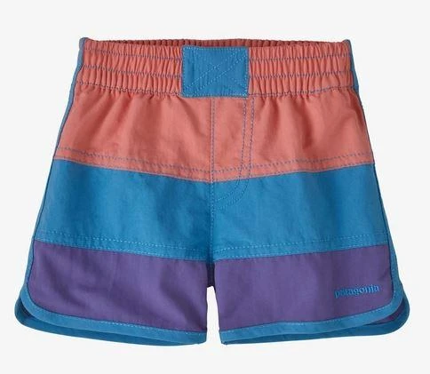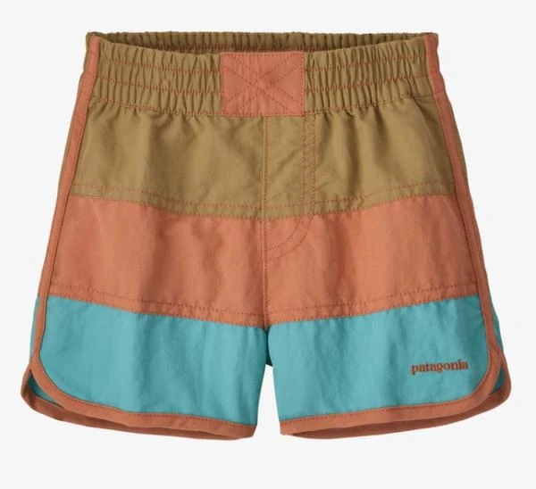 Our fun, color-blocked, baby-sized boardshorts are made of quick-drying fabric for comfort in and out of the water, and they have a soft elasticized waistband for easy on/off. The lightweight NetPlus® 100% postconsumer recycled nylon faille is made from recycled fishing nets to help reduce ocean plastic pollution; with a PFC-free DWR finish (durable water repellent coating that does not contain perfluorinated chemicals).