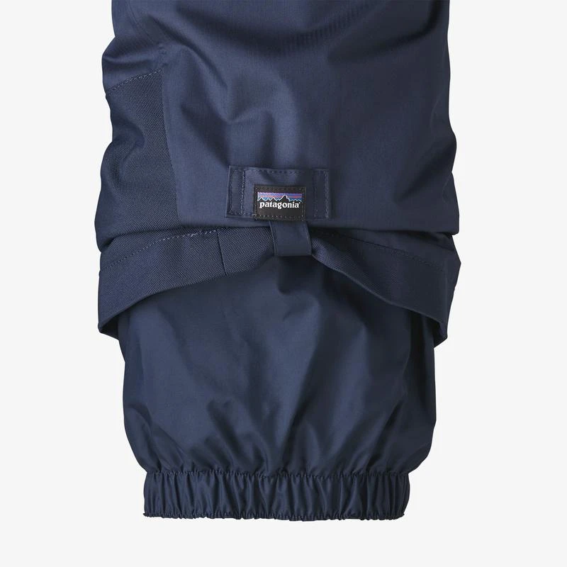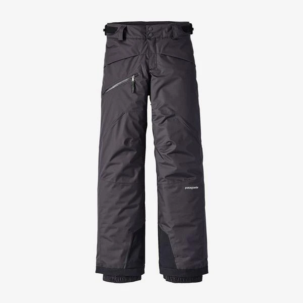 For protection from snow and cold, and to keep him on the slopes longer, the Boys’ Snowshot Pants have an H2No® Performance Standard shell with a waterproof/breathable barrier plus a DWR (durable water repellent) finish and are insulated with 80-g Thermogreen® polyester (92% recycled), which stays warm even when wet. They have fully taped seams to keep him dry. For a just-right fit, the tricot-lined, contoured waistband adjusts externally with hook-and-loop side tabs. Two covered handwarmer pockets (with hook-and-loop closures) plus secure pocket on upper thigh (wearer’s right side) with waterproof zipper hold lunch money. Articulated knees maximize movement. Durable nylon scuff guards protect hem and inside pant leg while internal gaiter with gripper elastic fits over boot and keeps out snow and cold. In addition, a tab inside each pant leg snaps under a loop on the back of leg to keep cuffs off the ground when walking to and from the slopes. Patagonia’s grow-fit feature in the legs increases length by two inches for extended wear. Reflective logo on front knee. Hand-me-down ID label.