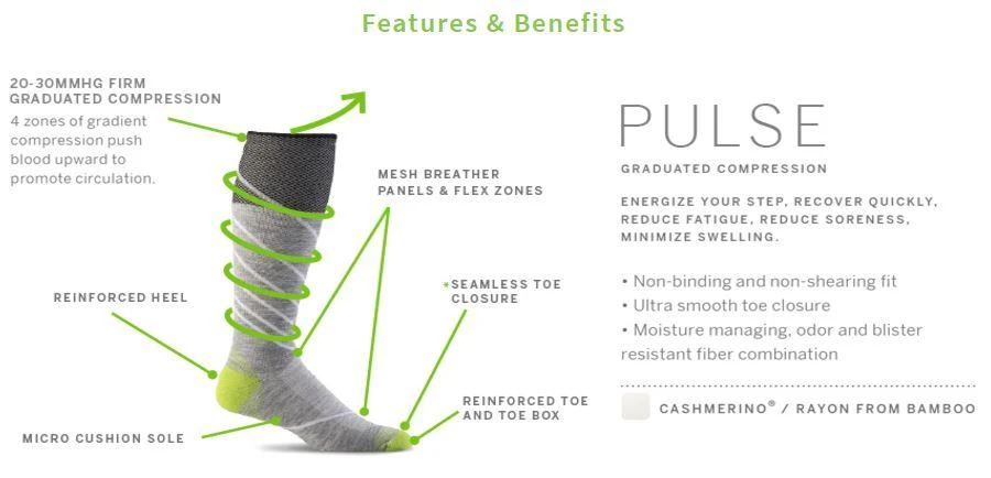 - Compression:Â 20-30mmHg Firm Graduated Compression