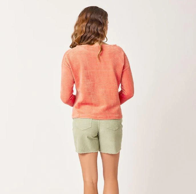 Velvety Soft Ribbed Knit Corduroy. WHAT? Yes. Its amazing in an easy to wear pull over boat neck with dropped shoulder detail.