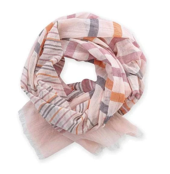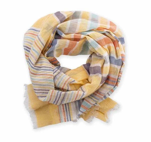 With pastel tones and varying sizes of stripes, the Esther scarf can stand out or blend in, however you choose to wear it. It’s linen-like and lightweight (think: feather-soft and breezy), so it’s just what you need as the sun tucks behind a cloud on an otherwise warm and perfect day.