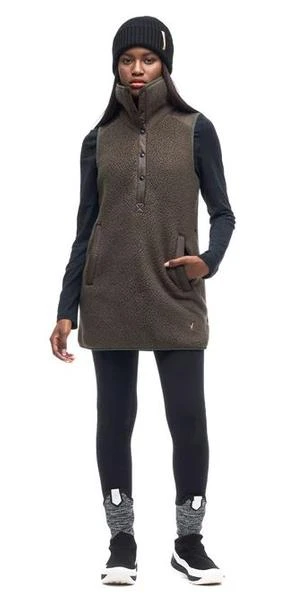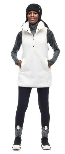 Sherpa sleeveless tunic maintaining warmth effectively while wicking away moisture, for outdoor activities in cool weather. Its casual design makes it the perfect blend of a technical second layer and active everyday clothing. Made from Bluesign®-certified Polartec® Thermal Pro Shearling fabric.
